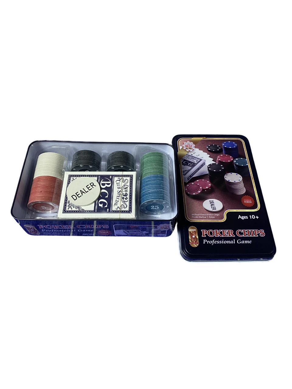 پوکر یک بازی گروهی کارتی است که بازیکنان در آن با استفاده از دست کارت خود تلاش میکنند تا با برتری در میان حریفان خود بازی را برنده شوند.این بازی با شانس و بلوف زدن بسیار همراه است. این بازی یکی از محبوب ترین بازی های گروهی در سراسر جهان به حساب می آید. این بازی به دلیلی ترکیبی از شانس، ریاضیات، برداشت و مدل بازی بین ثروتمندان جهان بسیار رایج بوده و بخش زیادی از تفریحات آنان به این بازی ارتباط پیدا میکند.این بازی به تازگی در ایران هم طرفداران زیادی پیدا کرده که در جمع های خانوادگی و دورهمی ها به راحتی میتوان با آن بازی کرد و دورهمی سرگرم کننده ای را برای دوستان و خانواده فراهم کرد.بازی پوکر میتواند با تعداد مختلفی از بازیکنان انجام شود، اما به طور کلی، بیشترین تعداد بازیکنان در یک میز ۹ نفر هستند. با این حال، در بعضی شرایط و بازیها ممکن است کمتر یا بیشتر از ۹ نفر شرکت کننده داشته باشد. به طور کلی، تعداد بازیکنان در یک بازی پوکر، بستگی به نوع بازی، شرایط و محدودیتهای موجود دارد.برای ارزان تر تهیه کردن این بازی برای سرگرمی خانواده و دورهمی های دوستانه ، این چیپ ها به جای متریال سرامیک با پلاستیک فشرده ساخته شده اند تا شبیه سازی بازی را کاملا تداعی نمایند. این چیپ 100 تایی بازی پوکر جعبه فلزی تمام مهره ها و تجهیزات اولیه بازی را دارا میباشد.